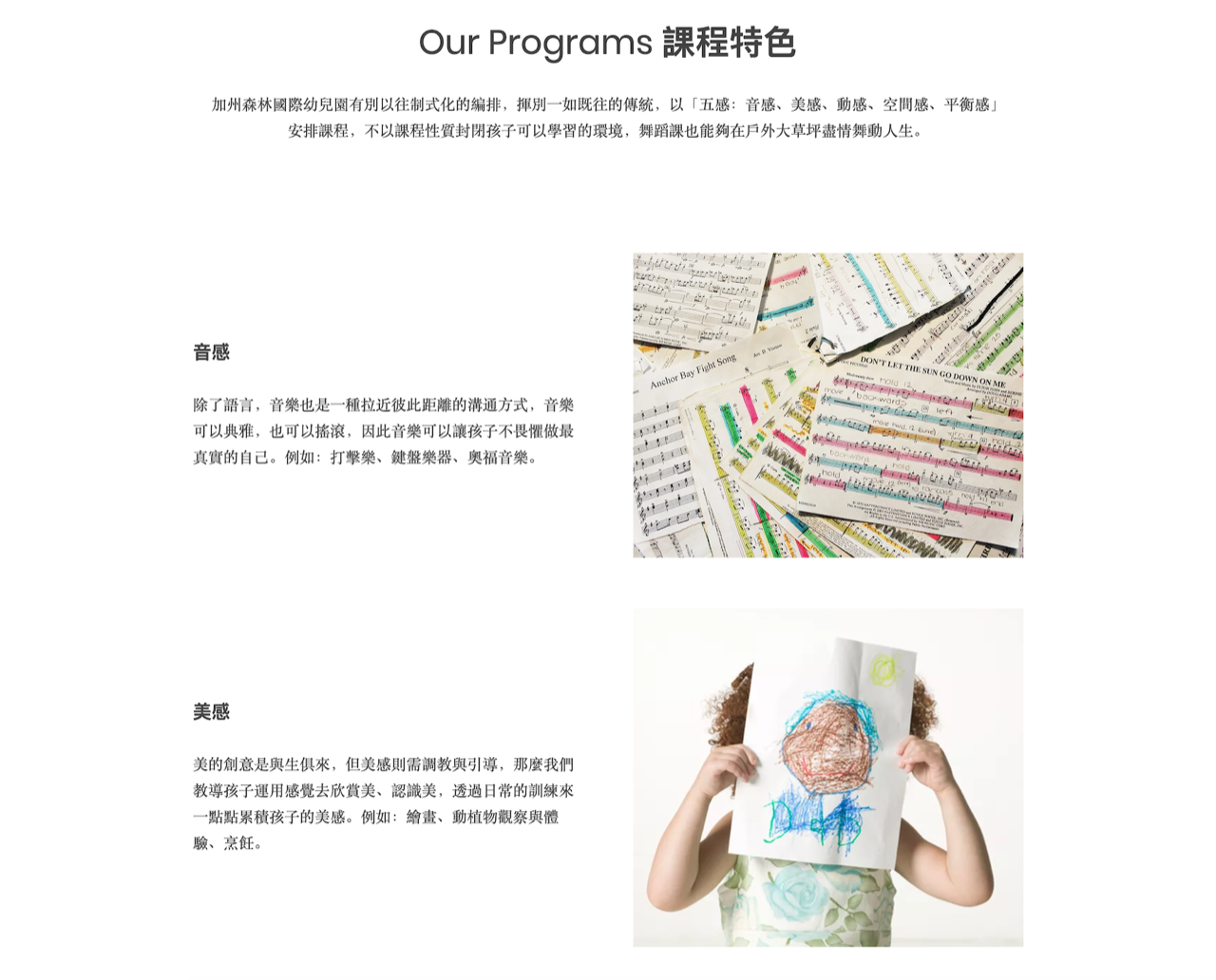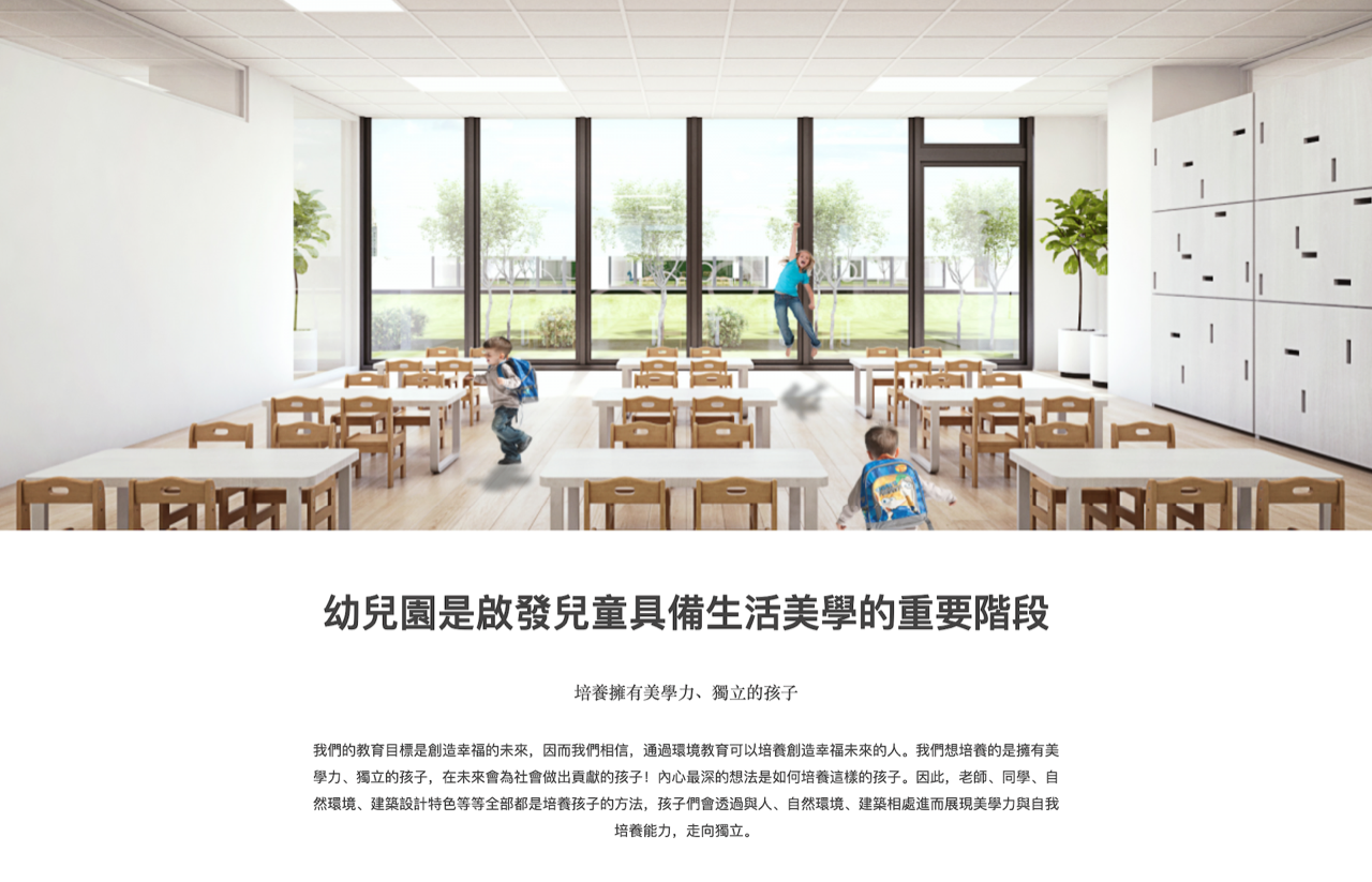 幼兒園是啟發兒童具備生活美學的重要階段,透過建築規劃巧思與行銷宣傳招募規劃的整合,將加州森林國際幼兒園提升為台灣幼兒園生活美感教育的信賴品牌。德築團隊以環境、建築、教育理念、市場、媒體宣傳等多面向切入,打造有溫度、感動人心的幼兒園故事與畫面,同時透過數位行銷與媒體宣傳,創造市場話題與詢問度。