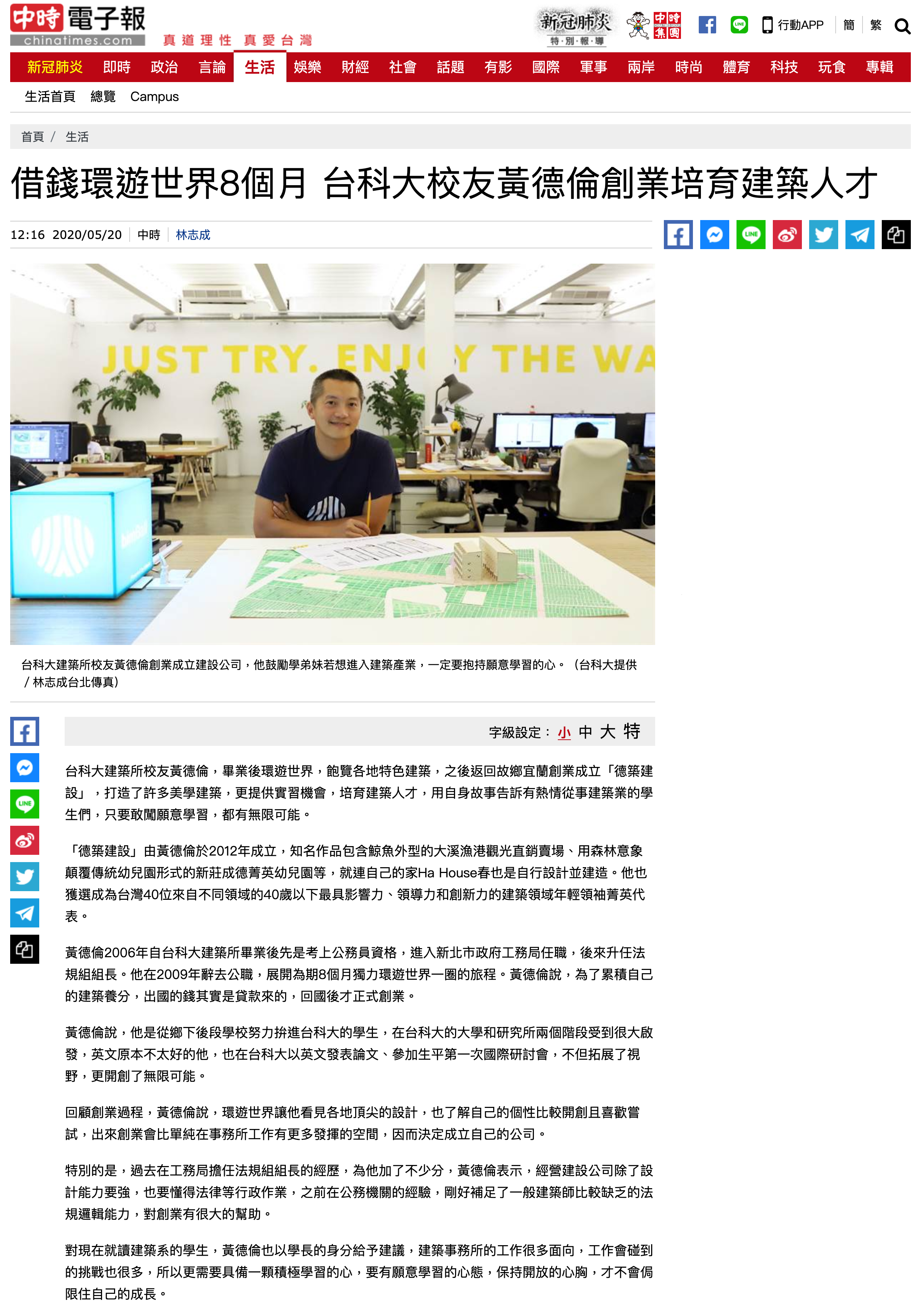 借錢環遊世界8個月 台科大校友黃德倫創業培育建築人才