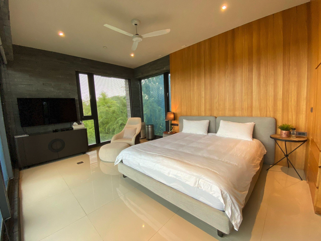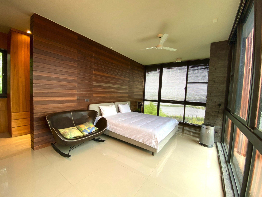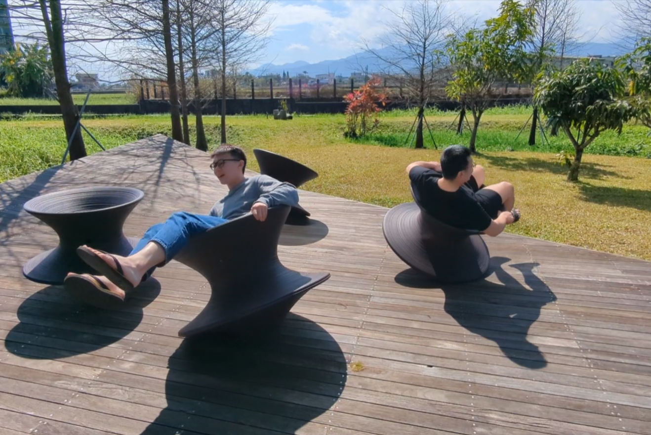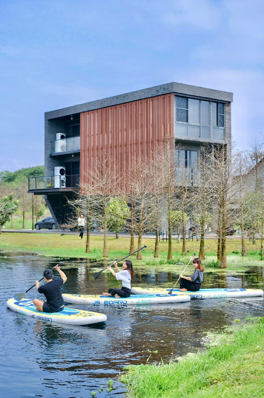 隔天一早趁著退房前,把握最後的渡假時光,還可以在平穩水域的湧泉中,輕鬆赤腳踩著草皮、划在30公分水深的自然湧泉上體驗 SUP 立槳,跟家人好友們來一場趣味競賽,坐著玩、躺著玩、趴著玩、站著玩,還能坐在英國建築師海澤維克設計的 spun chair 陀螺椅360度旋轉放空,回歸童年單純自在的放鬆感覺!在自然包圍的環境中,與家人好友們一起創造最快樂的生活記憶,愉悅又優雅的體驗做為智慧別墅屋主的生活感。