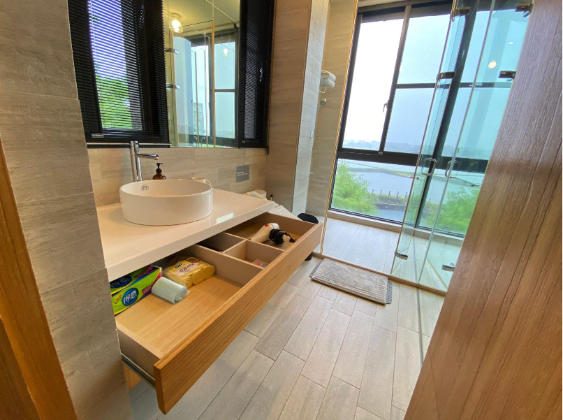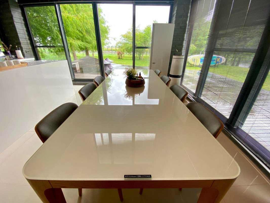 − 餐廳挑高6米6,廚房設備齊全,採用電陶爐及智慧型微波爐,可自行開伙,享受被自然包圍時料理與品嚐美食的樂趣,徹底的感受徜徉大自然的放鬆。