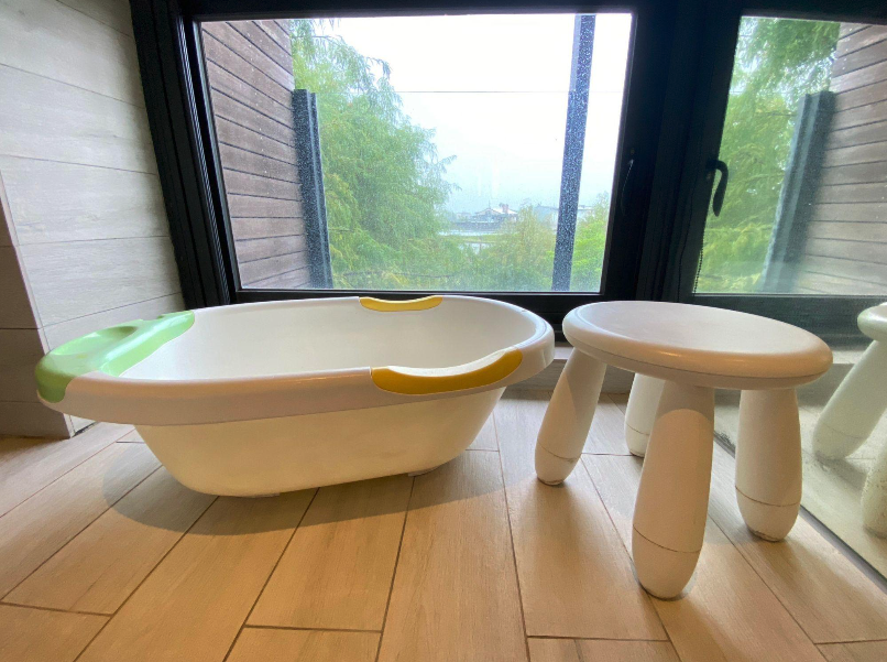 ©️嬰兒浴盆與小椅凳於二樓衛浴洗手台下方位置
