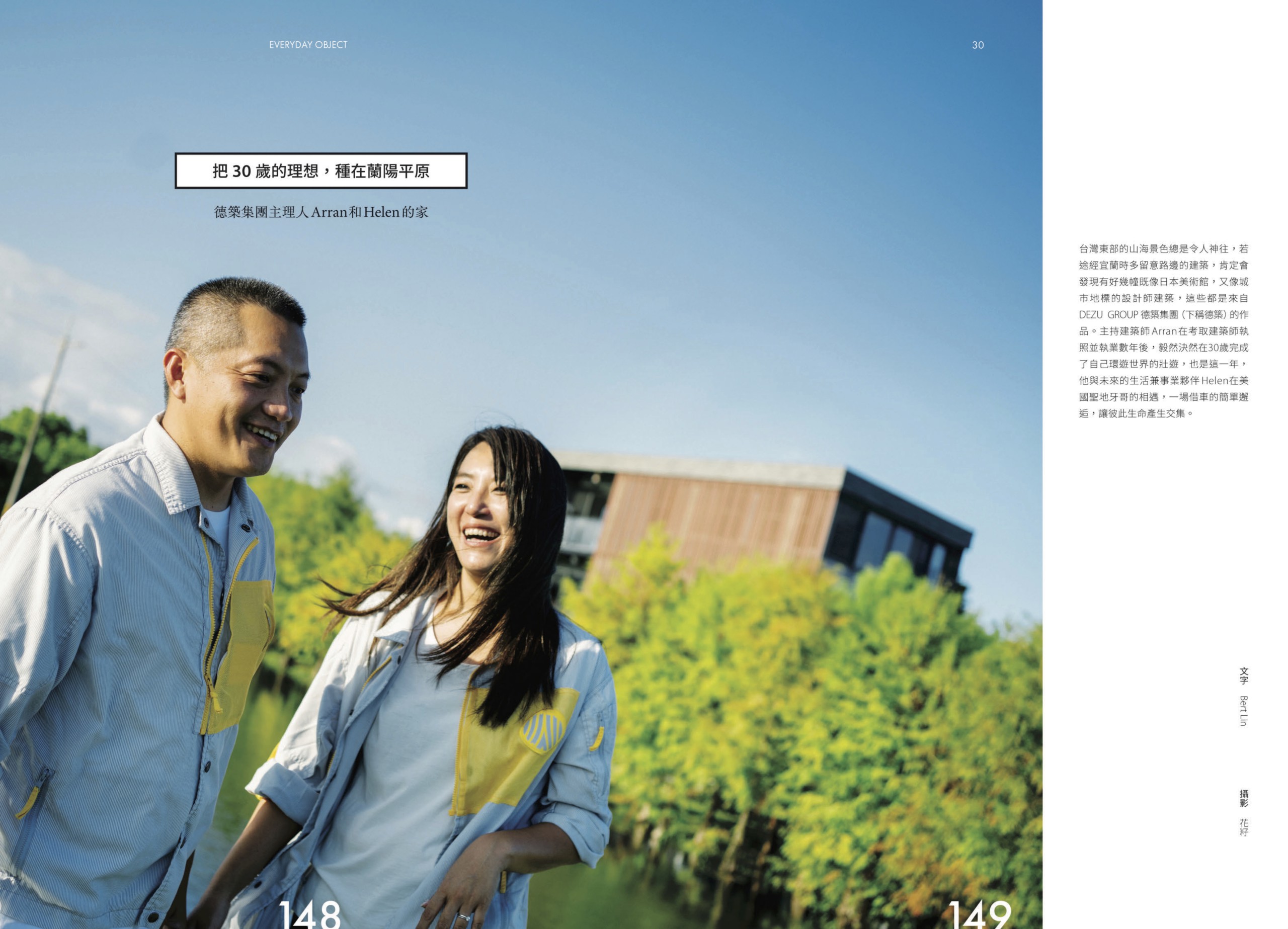 關於30,可以有很多種故事,德築集團建築師Arran與Helen把30歲的理想里程碑,種在宜蘭蘭陽平原。建築師Arran在考取建築師執照並執業數年後,毅然決然在30歲那年完成了自己環遊世界的壯遊,也是這一年,與未來的生活兼事業夥伴Helen在美國聖地牙哥相遇。一場借車的邂逅,讓彼此譜出一段美好的緣分。