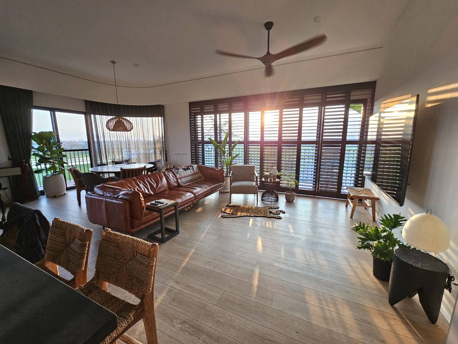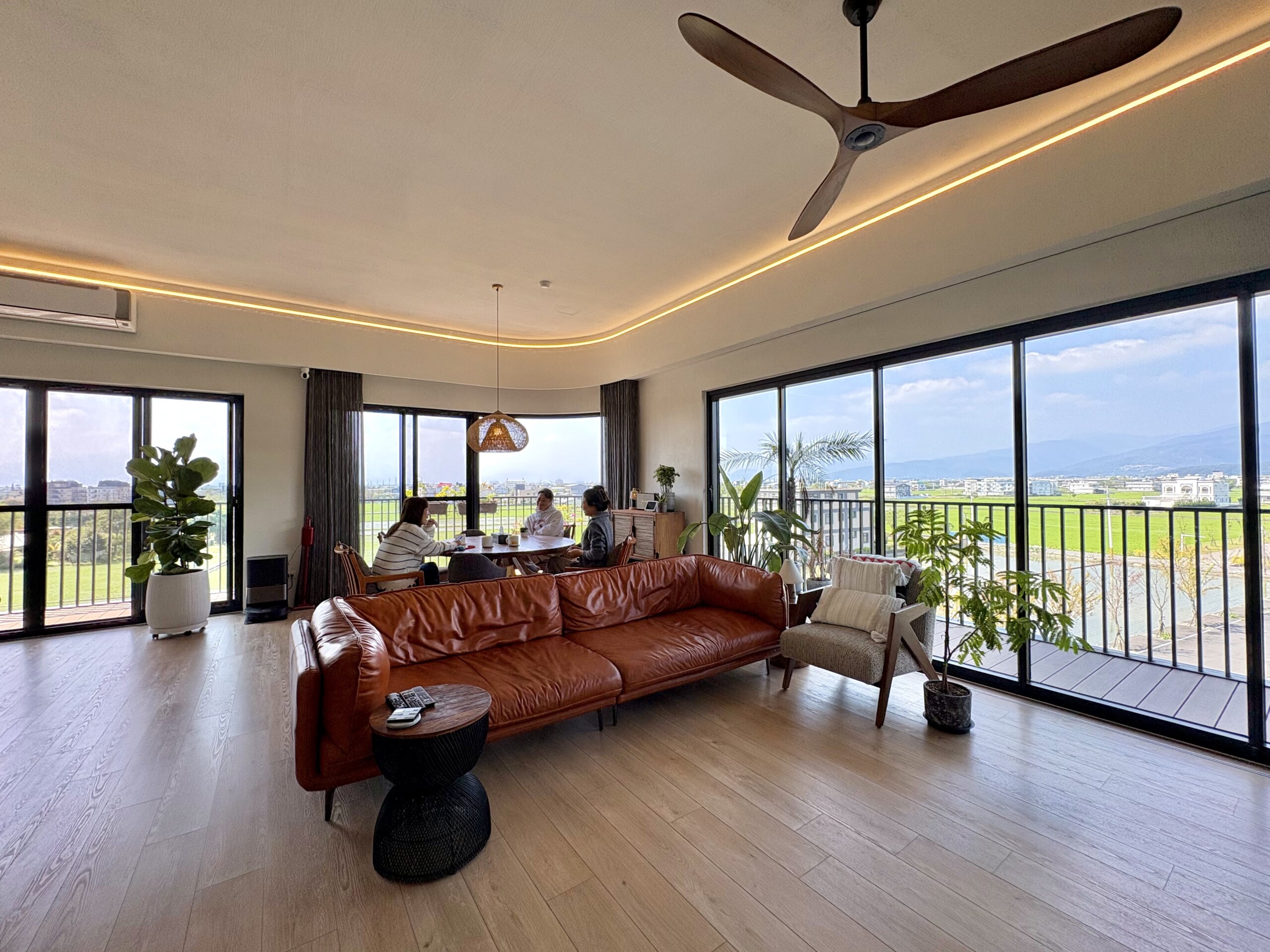 跟Ivan&Amanda聊天的時候,音響傳來冰島女歌手 Laufey的,溫暖如絲絨般的嗓音,跟落地窗撒下的天光,交織成慵懶的風景。走進住戶 Ivan 與 Amanda 位在「築山」的家,你會發現「放鬆」不再需要特別安排。沒有牆壁的阻隔,只有稻浪與天光。看書、發呆、或是看著孩子與狗在車道追逐,這些在城市中奢侈的畫面,成了他們家最平凡的風景。這棟房子不只改變了居住地點,更重新定義了這一家人的「假日」。