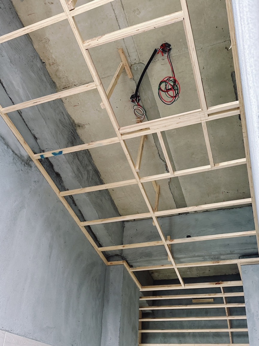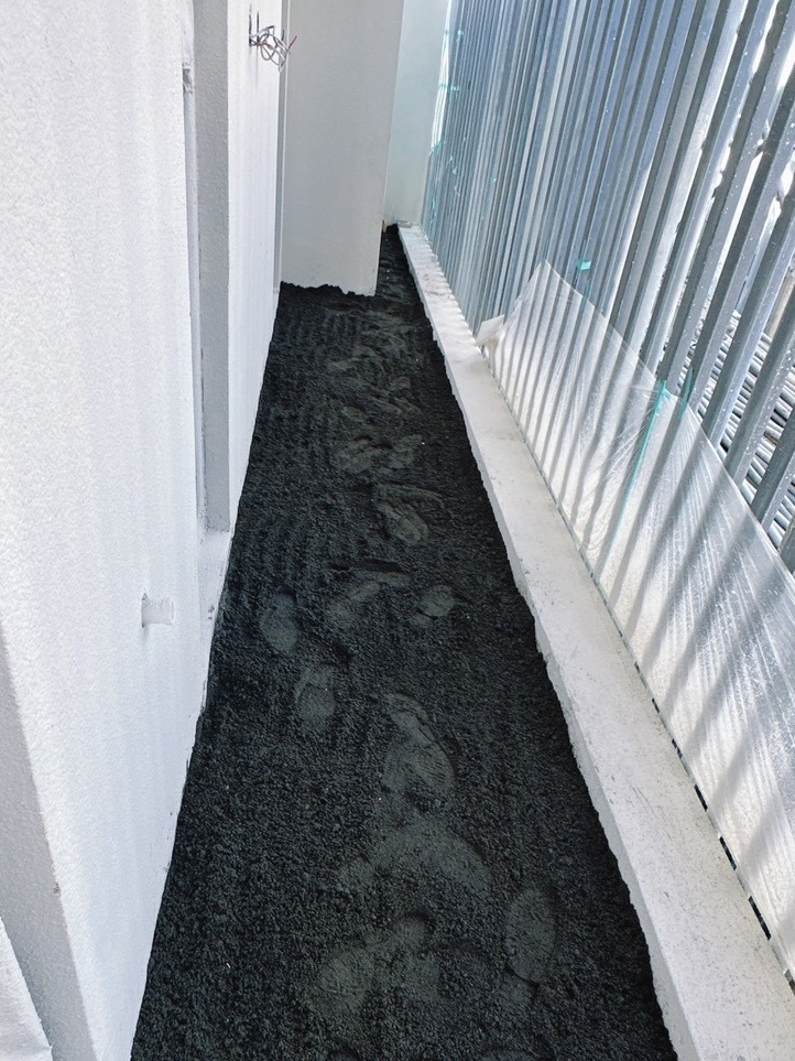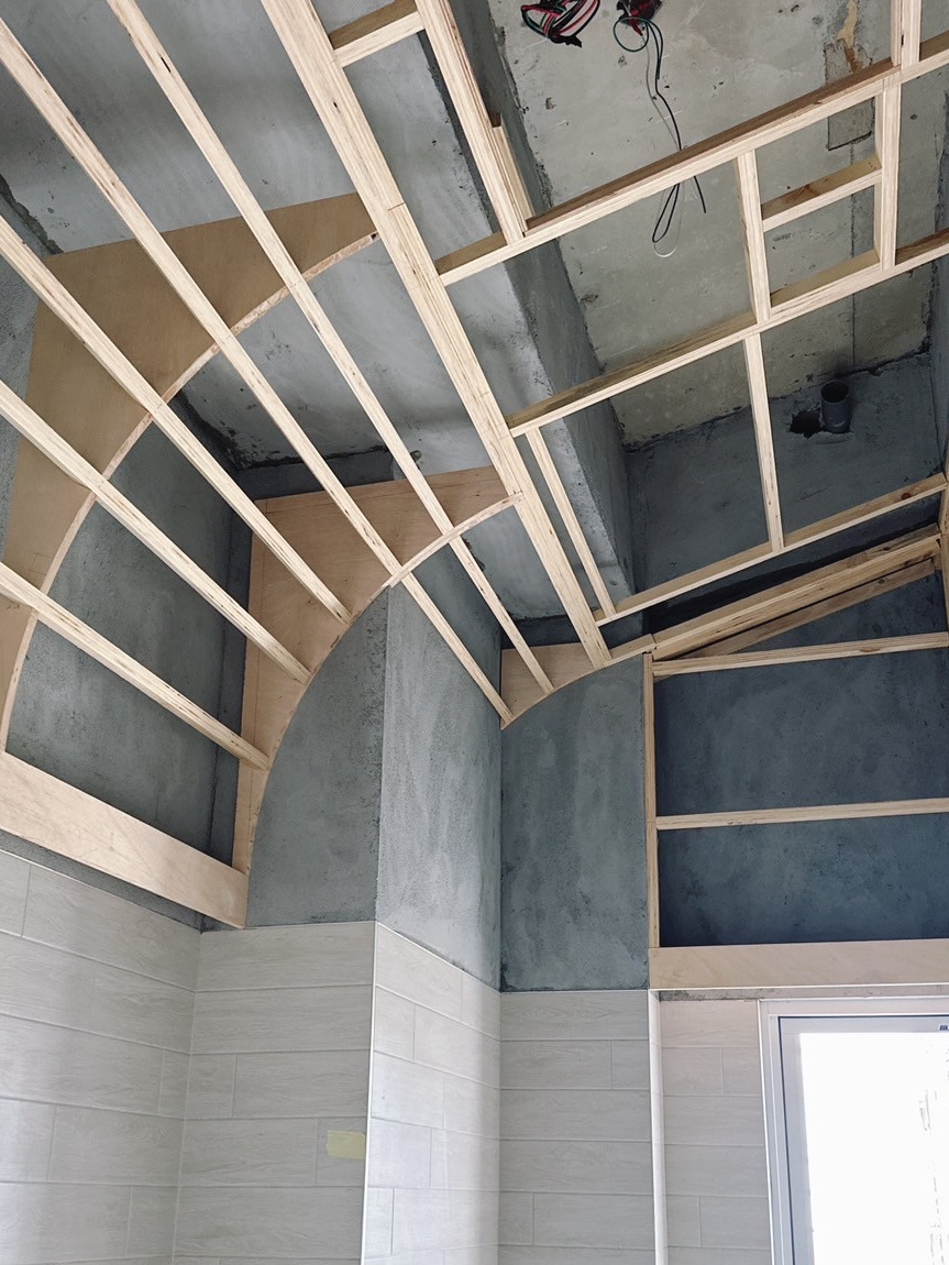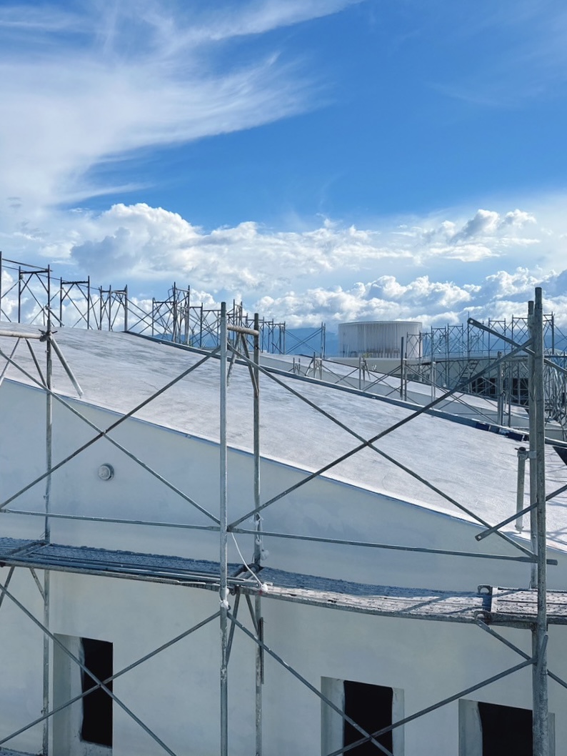 2025.08 S區和M區陽台格柵安裝、天花骨料施作、屋頂PU中塗施作