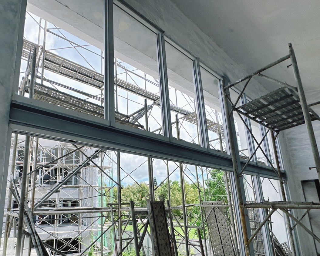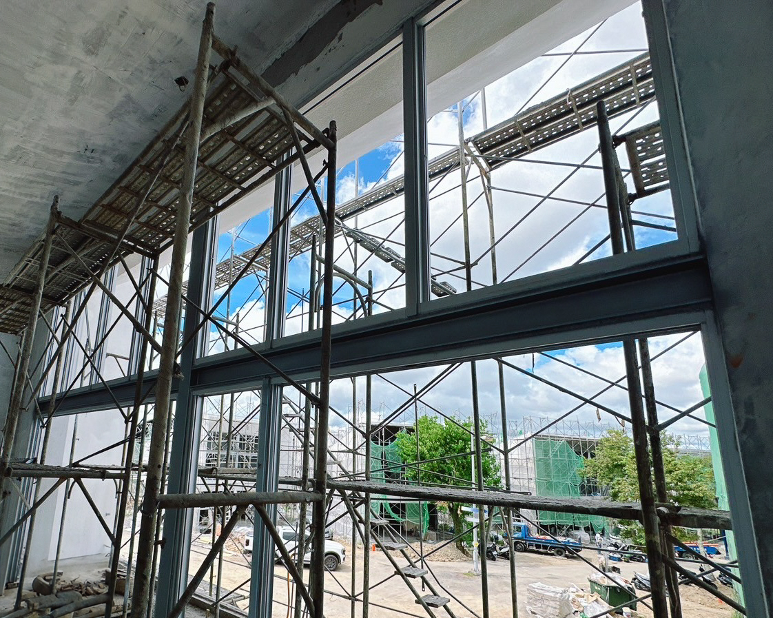 2025.09 屋頂斜面底漆施作、浴廁天花板骨架施作、二樓鋁窗安裝