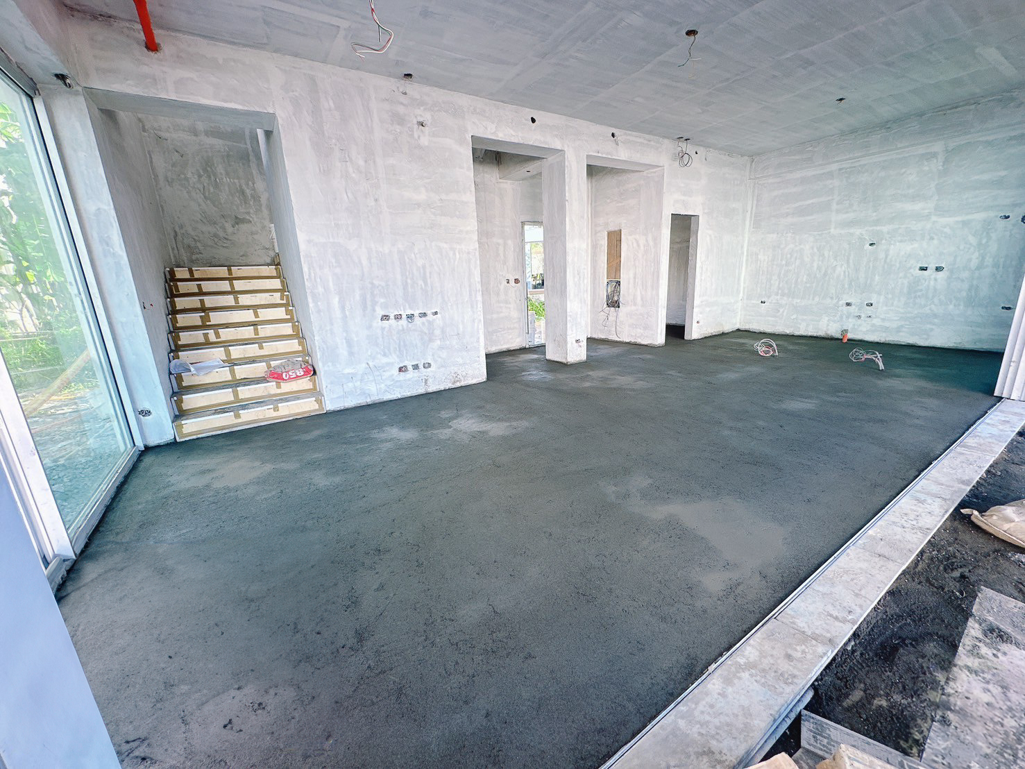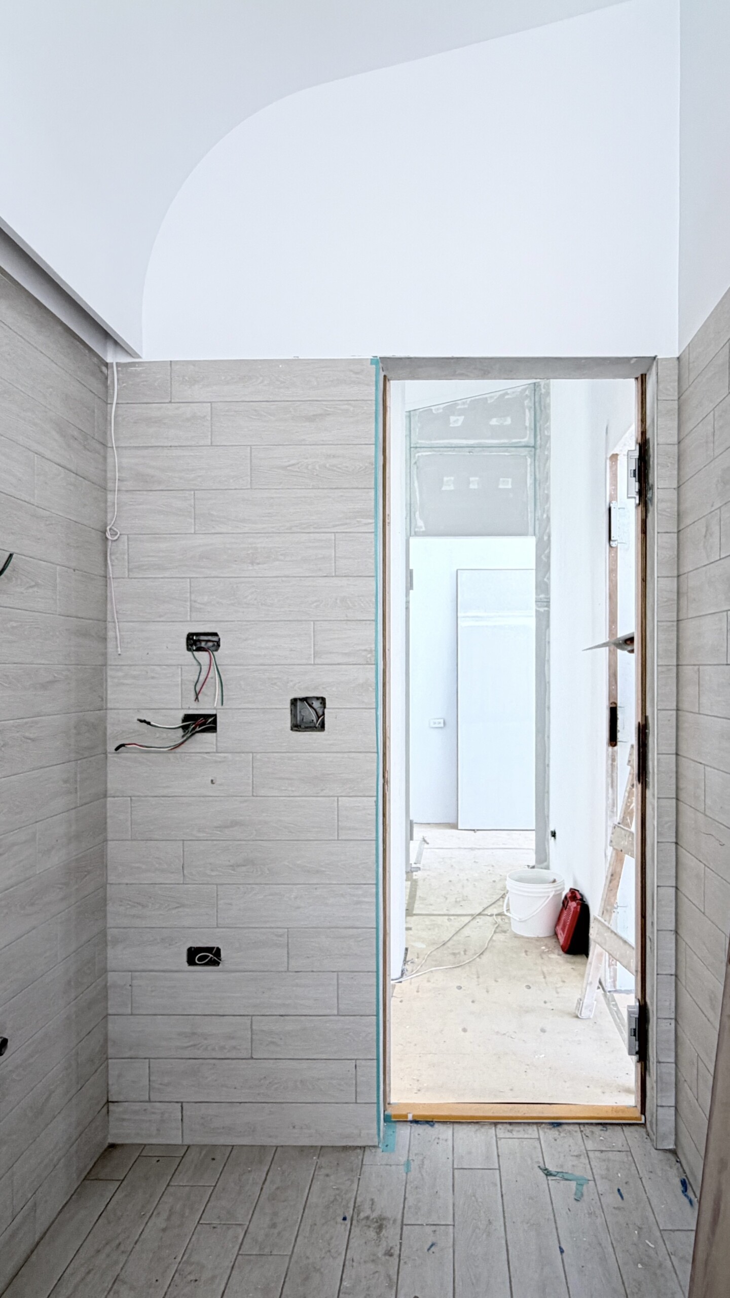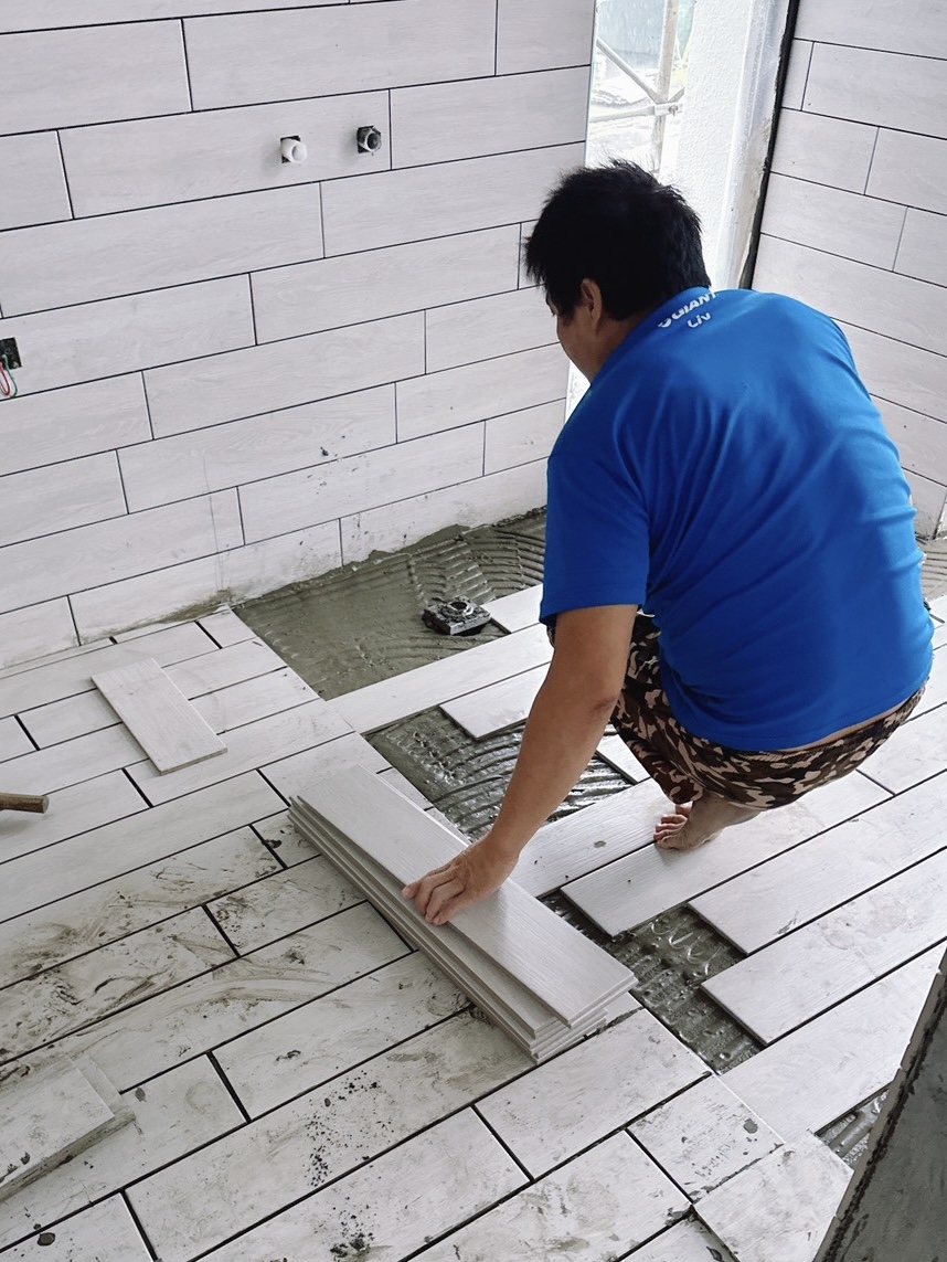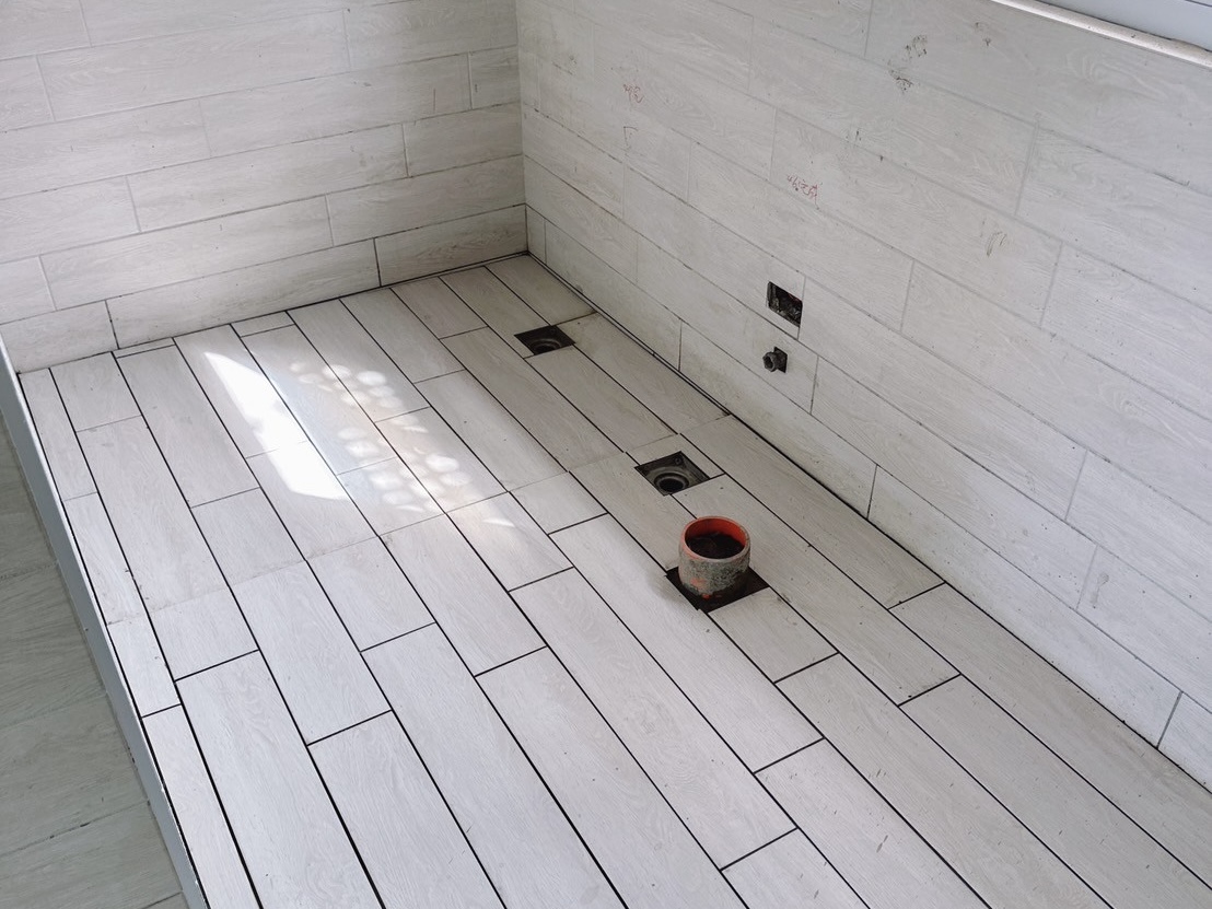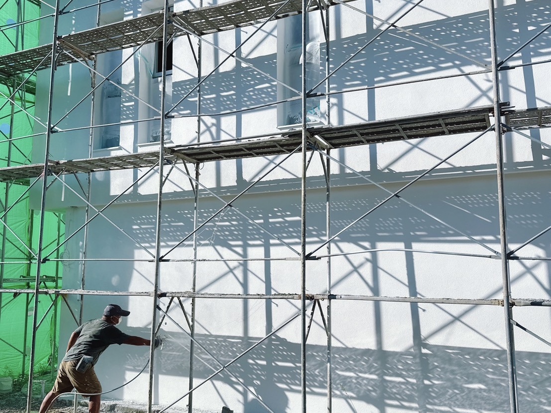 2025.09 T區S區浴廁貼壁磚地磚、S區一樓地坪打底、外牆透明面漆噴塗
