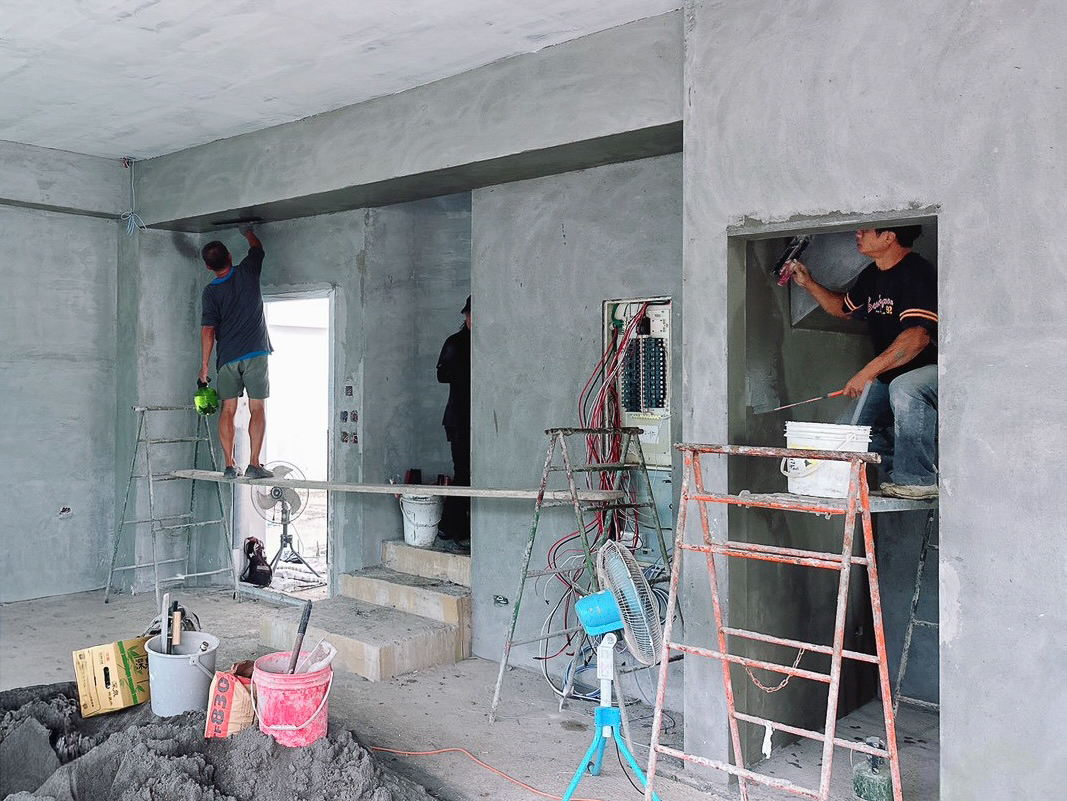 2025.03 T區3、5、6屋頂版灌漿、全區室內外打底粉刷和防水塗佈
