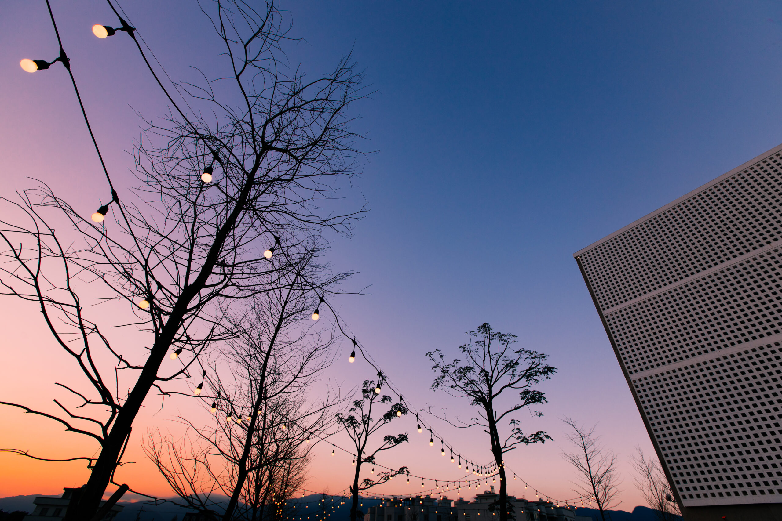 建築外牆白色空心磚結合燈光設計,與串連在築田運動生活村特別設計的休閒廣場處的小夜燈,是優雅有氣質、有氣勢,與大自然天幕融合為一體的建築與景觀燈光效果設計,隨著太陽西下天空橘黃粉紅藍色的變化,襯托築田簡單與俐落的線條比例,沿著車道進入社區內,還有呼應著建築燈光設計的光束,從入口就迎接著您安全回家。