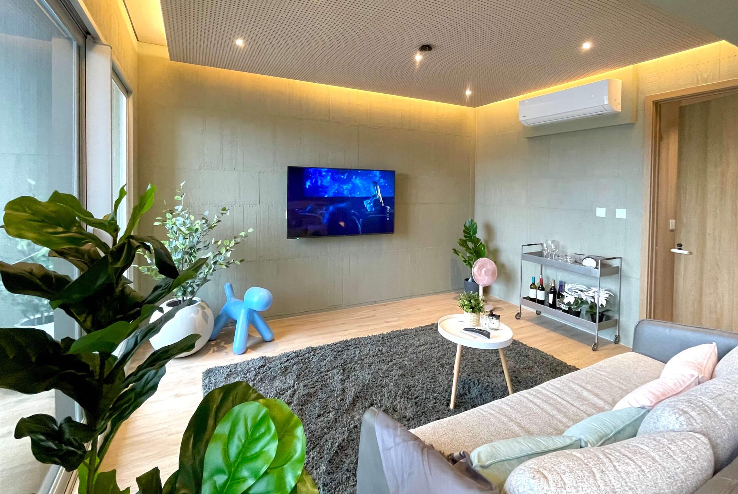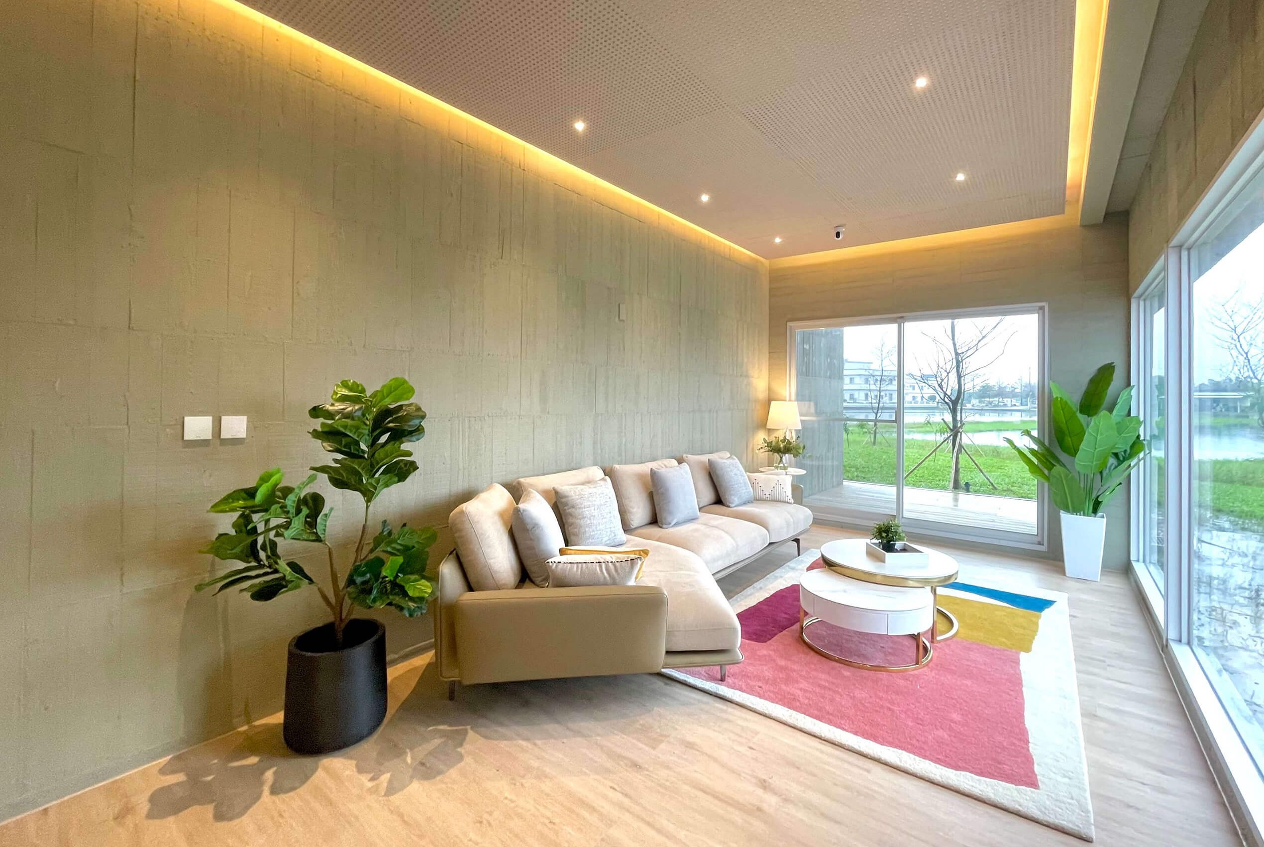 透過模矩化設計,築田運動生活村將房屋單元化,可以依需求選擇與彈性組合適合的單元數與生活風格,每一個單元都擁有完整的生活機能、開放式的客餐廳格局與中島設計整合規劃,隨時都能變化出個人生活風格的專屬生活領域;室內裝修風格現代簡約,回歸簡單生活,採用最真誠反應材料質感的混凝土,做為室內外牆壁主要的材料,室內搭配木作天花、系統櫃、卡扣地板等木質溫潤語彙、融合大地灰與自然綠色彩,打開窗戶清晰空氣隨著微風吹入室內,在家放空享受生活悠遊自在的宜蘭lifestyle。