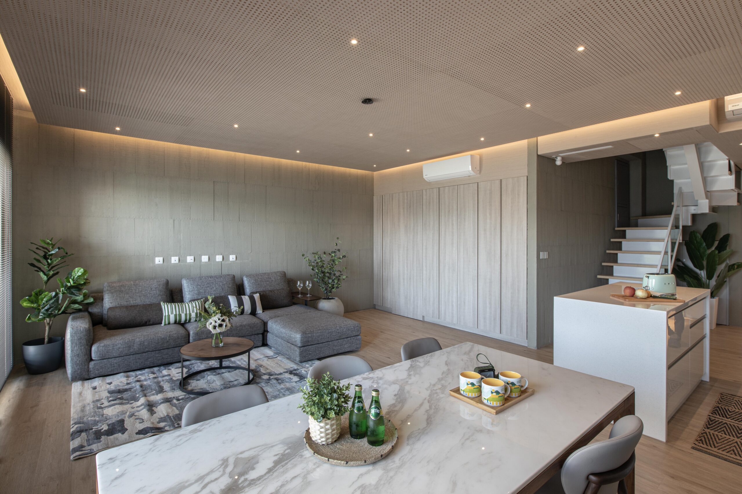 戶戶大面落地開窗採光通風佳,同時設計較深的陽台與露台巧妙遮陽也供多元運用,掛上吊床吊椅隨時都能在日光下享受度假氛圍、在牆上鑲嵌上自行車架省下收納空間更能展示愛車,以及藏有斜樓板的設計,自然將光線引入室內,視覺上創造更大的空間感及無形中感受風、日光、空氣自然的流動於室內。