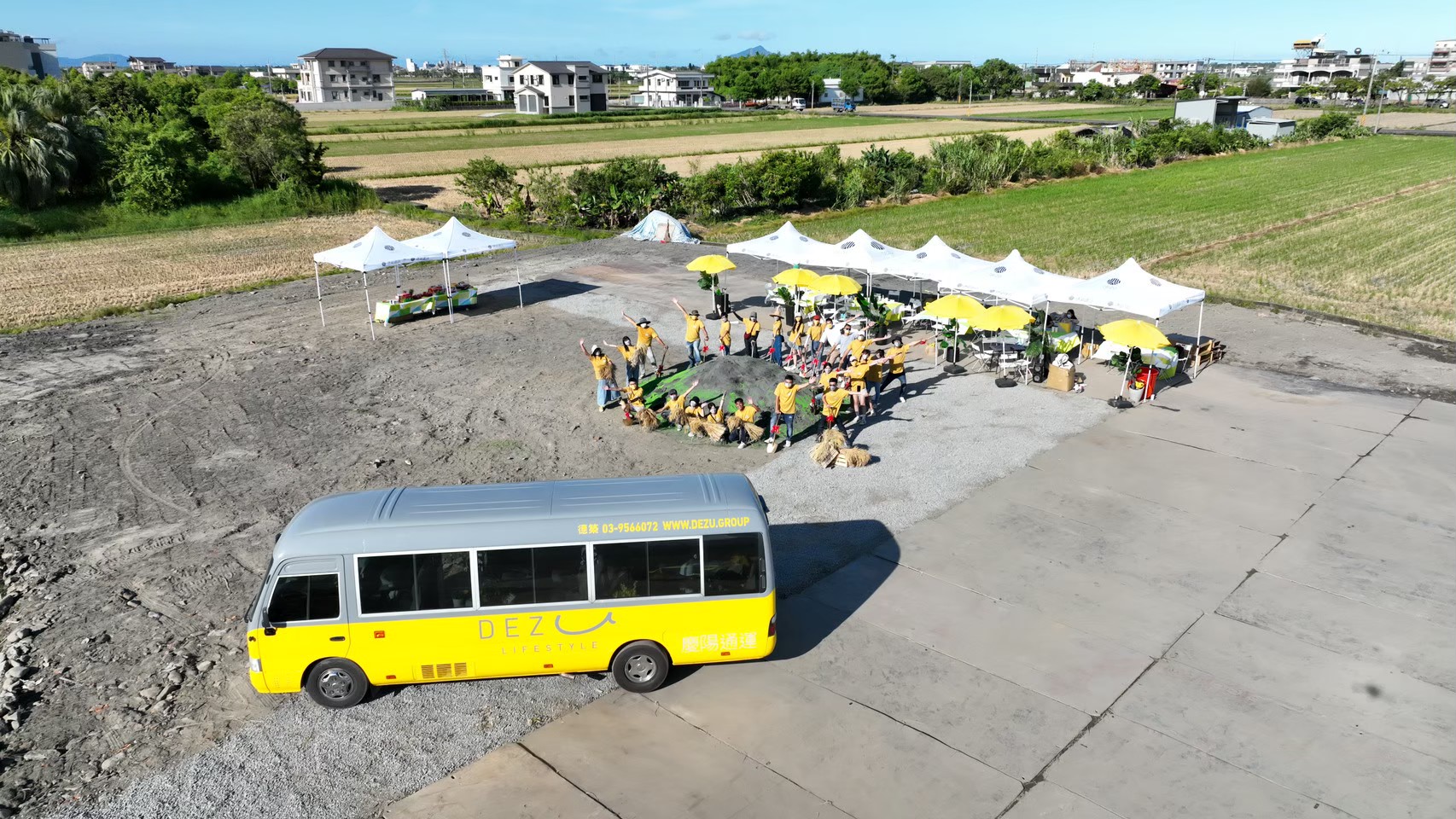 位於壯圍鄉的築山樂園生活村,有綿延的山巒與塊塊稻田相伴,遠方有駐守在太平洋的龜山島守護著。在舒爽的夏季午後,德築邀請築山夥伴們來到基地祈禱與體驗原創性十足的開工派對,不論整體活動企劃、主題性的場地佈置、現場苔球手作DIY規劃、飲食涼水的安排,處處可見德築團隊要帶給住戶各種愉悅感的小巧思,讓開工動土的大喜之日,也能是一場豐富好玩的派對,提前體驗未來住進築山,可以每天喝著茶看山看稻田,過著日日療癒的愜意生活。