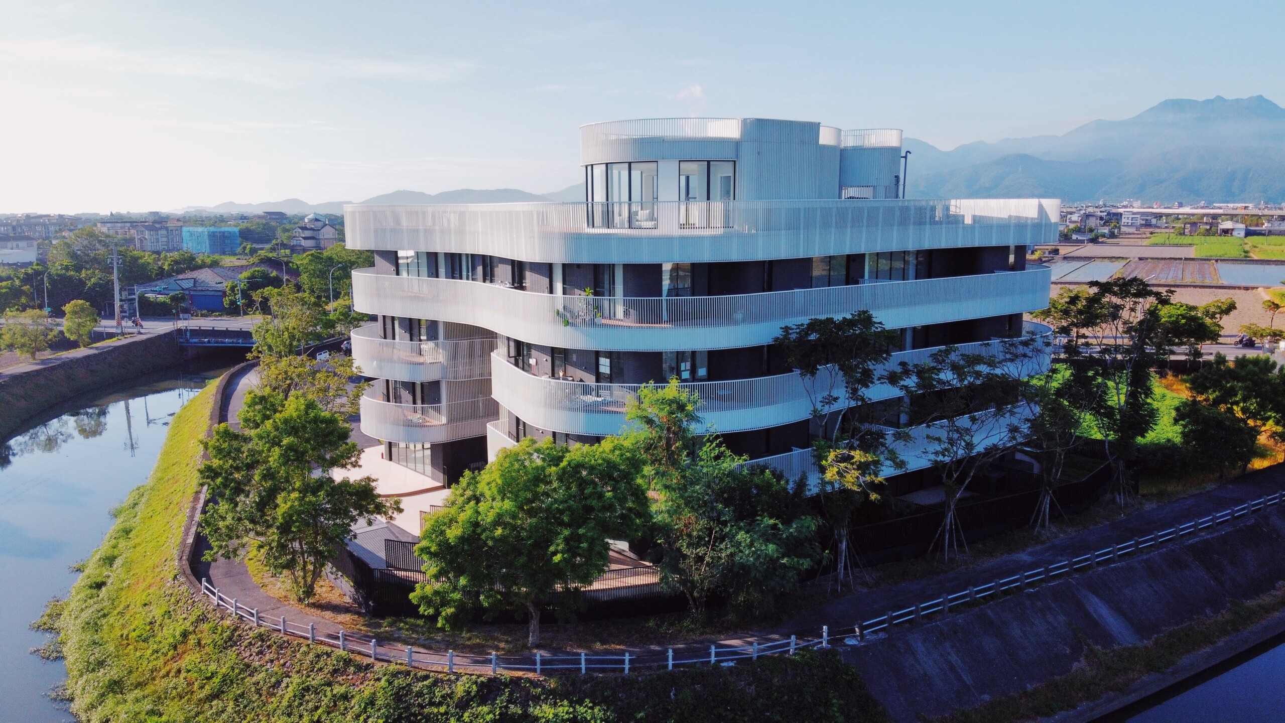 這座夢幻得讓人想收藏大地藝術品,座落城市卻享有難得寧靜的水岸環境,純白曲面外觀,亦緊緊呼應著建築與自然環境,陽光與風輕易自然流動於四周,空氣雙向對流創造輕盈靈動的室內,融合水岸和大片綠地包圍的清爽感,奠定美好居所的最先決條件。各戶室內雖有著量體深淺不同的特色,陽台邊界卻拉齊整個建築物,保持俐落一致清爽輕透。