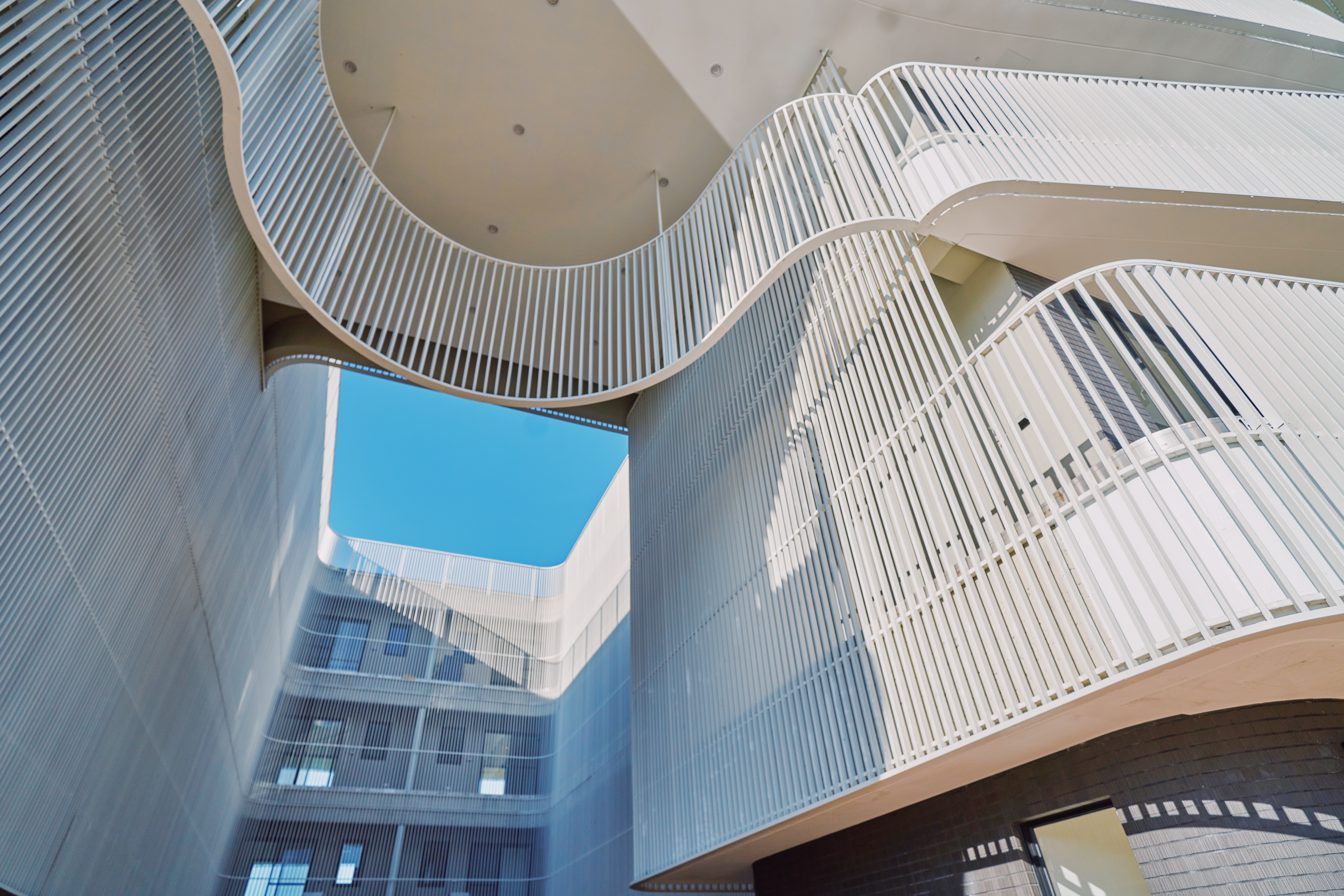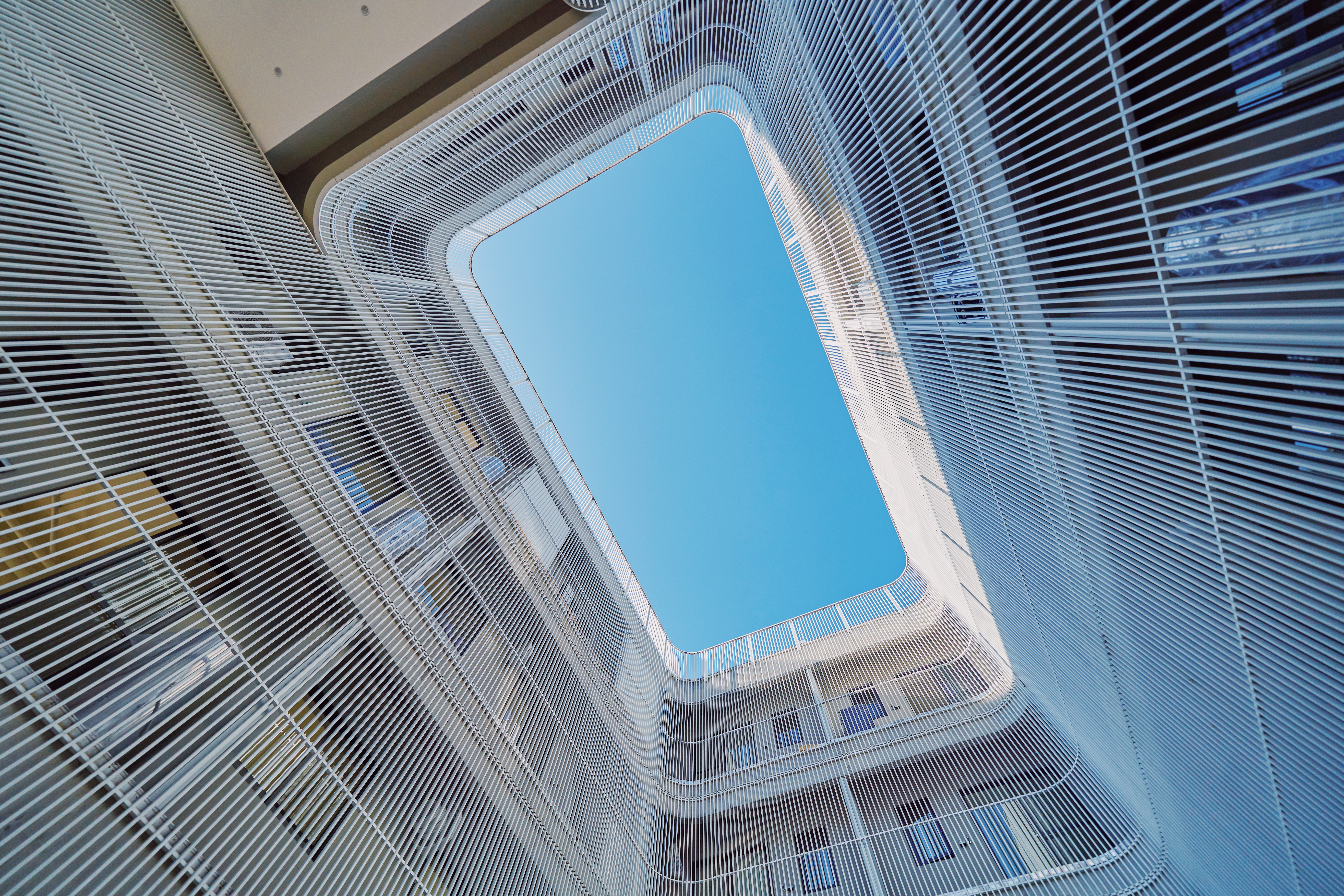 ©抬頭仰望的中庭天井接近天光與大自然,在城市裡獨有的柔美與輕透兼具的愜意生活。