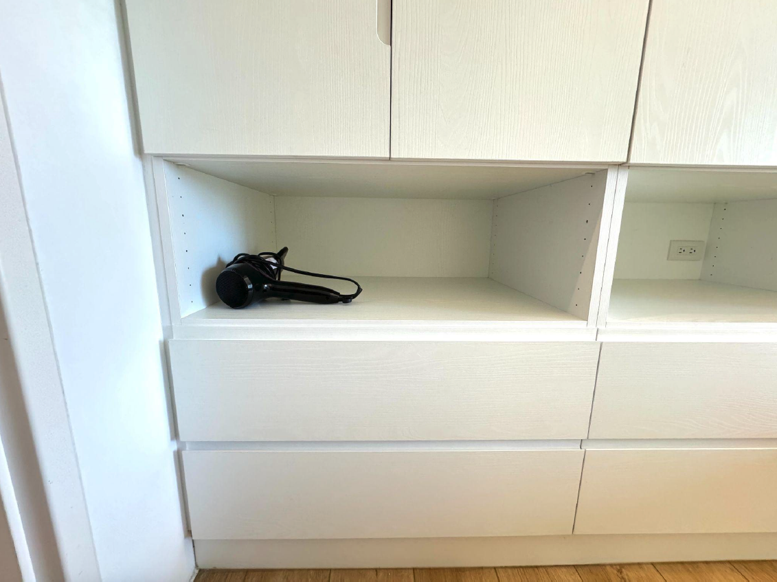 ©️臥室桌面上與櫃子可找到快煮壺與吹風機。