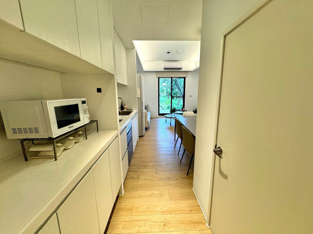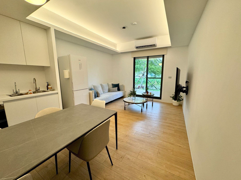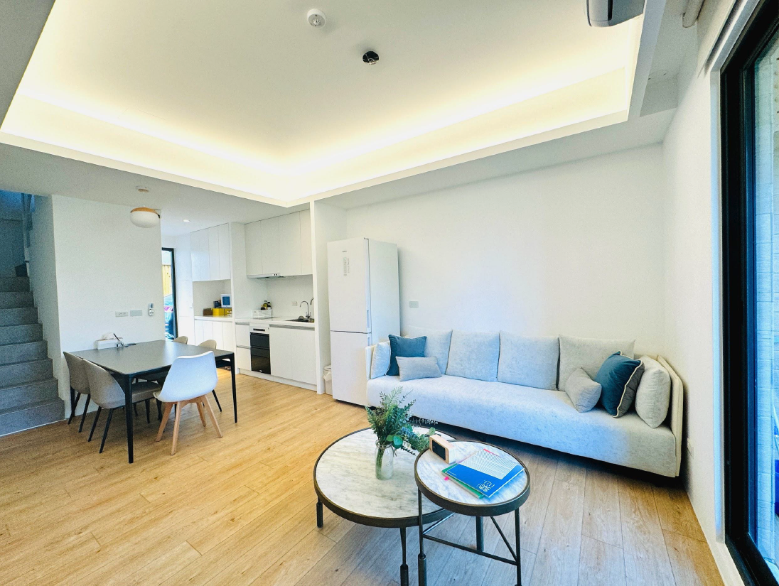 − 1樓 開放式客餐廳、廚房、客廁、陽台庭院。廚房設備齊全,採用電陶爐及微波爐、烤箱、電子鍋,可自行開伙。