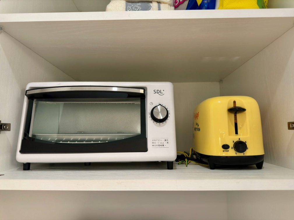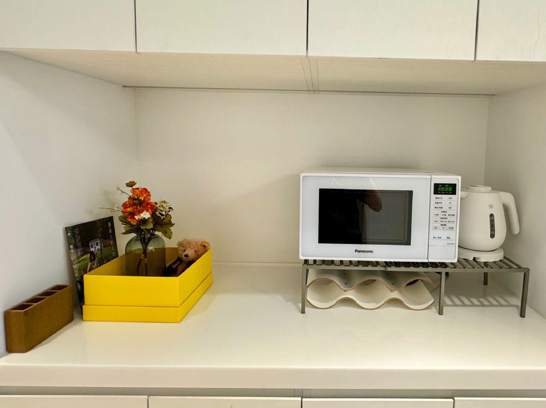 ©️微波爐的櫃子上下方可找到上述電器用品。