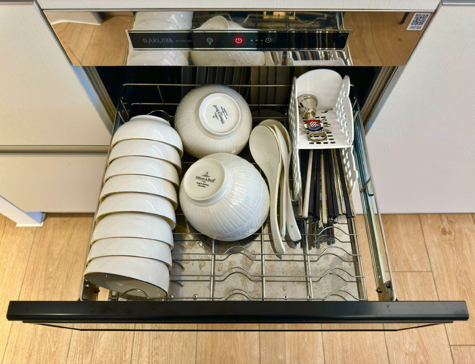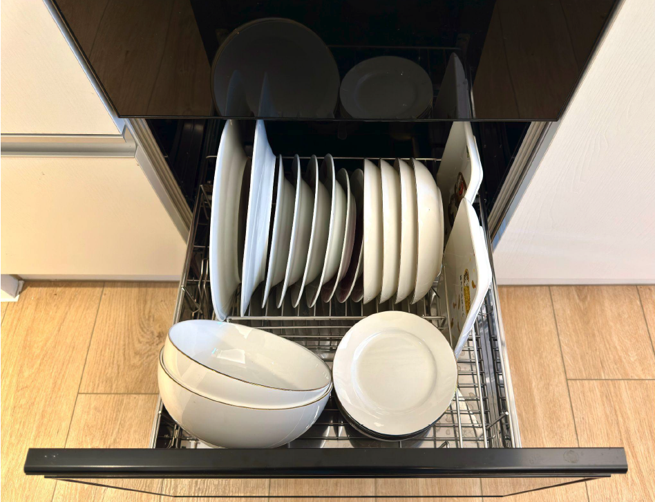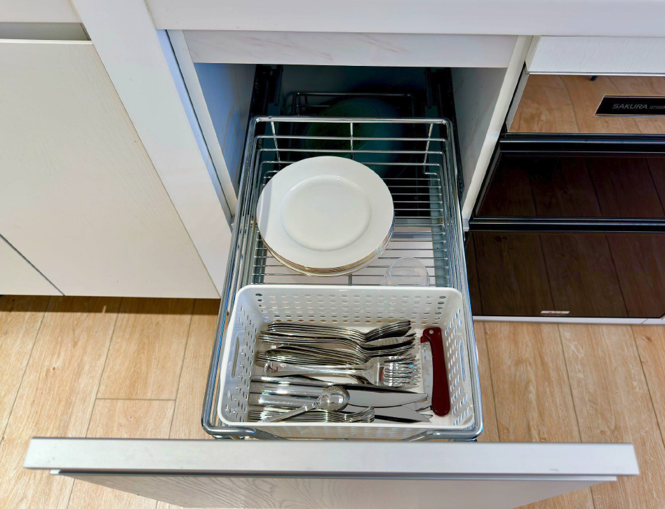 ©️廚房下方拉籃與烘碗機內備有刀叉、碗筷、盤子與鍋子。